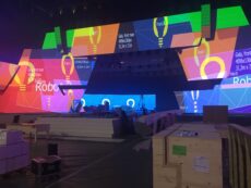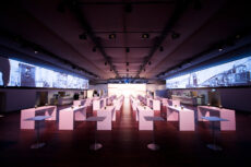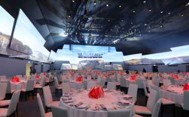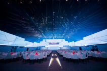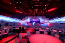 The second room, featuring the main stage and hosting the gala dinner, showcased ABB as a dynamic, innovative, and pioneering company. The Miagi orchestra provided musical accompaniment, and a highlight was the transition animation from the old to the new Corporate Identity.