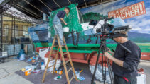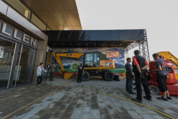 At the Messegelände Neumünster, Zeppelin Rental Deutschland presents a breathtaking display of artistry by English artist Sarah Watson. Through masterful paintings, Watson achieves the seemingly impossible task of making a Caterpillar excavator disappear before your eyes.